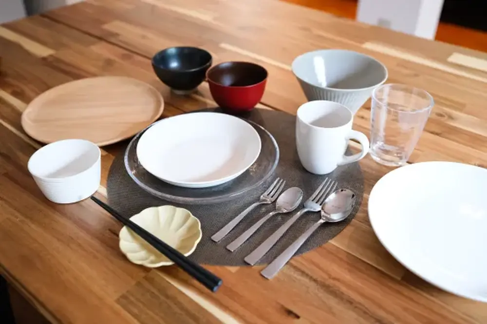 | 食器類 | 箸、スプーン、フォーク、ナイフ、茶碗、お椀、カップ、グラス、深皿、大中小皿、サラダボウル、ランチョンマット |
