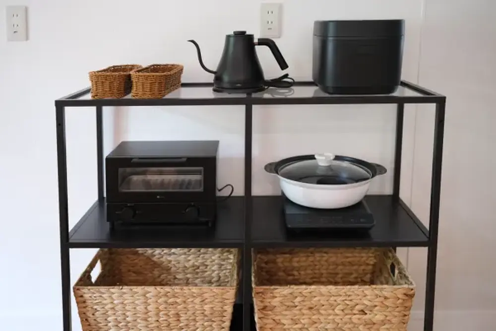 | 調理器具 | 土鍋、包丁、まな板、ざる、ボウル、バット大、バット小、はさみ、片手鍋、中鍋、パスタ鍋、フライパン、菜箸、トング、栓抜き、缶切り |